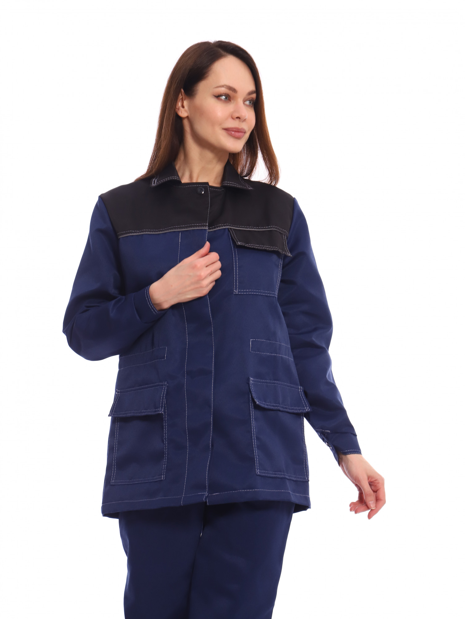 Костюм ПЕРЕДОВИЦА женский (куртка+брюки) ткань смесовая, т.синий/черный КРОНОС
