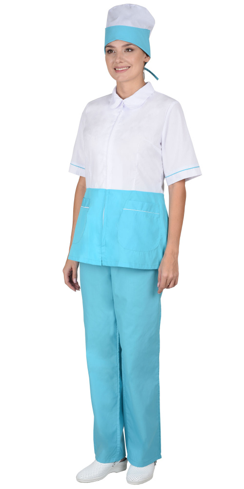 Костюм "Стефани" женский: куртка, брюки, колпак белый со светло-бирюзовым (ЧЗ)