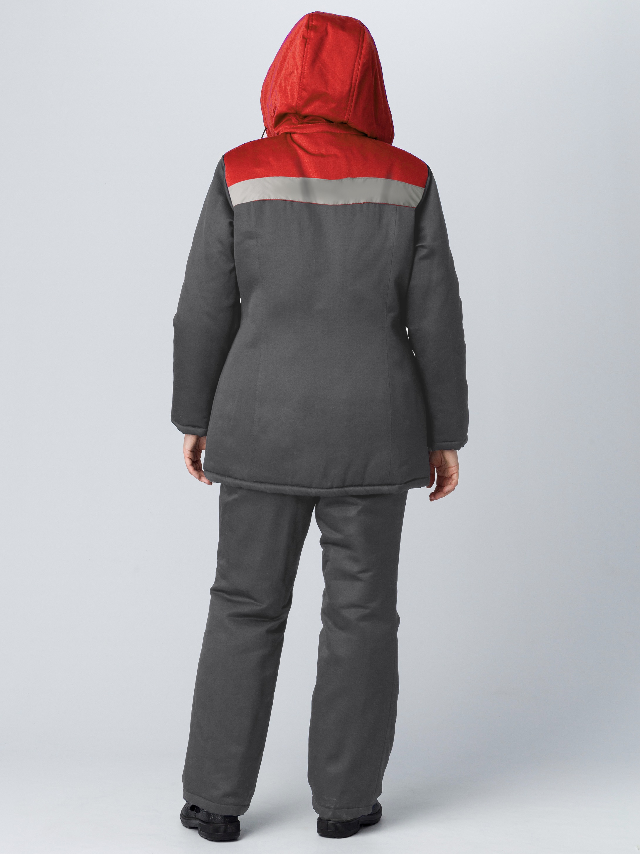 Куртка зимняя женская Вьюга (Кнейд) СОП (тк.Смесовая,210), т.серый/красный (ЧЗ) (128-132/170-176)